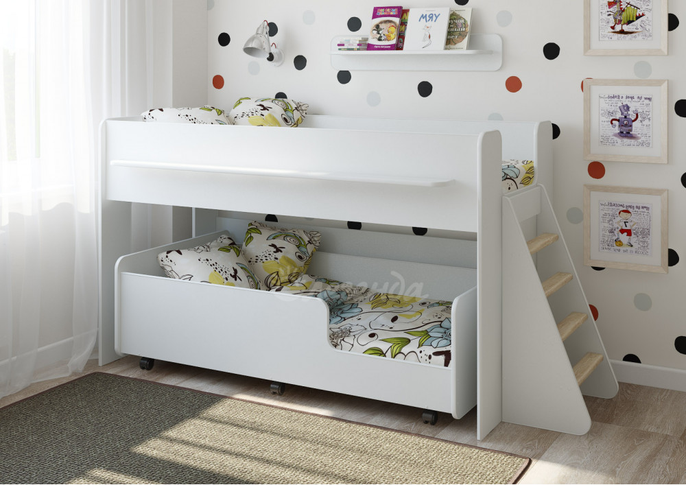 Детская выкатная кровать Легенда 23.3 белая - замечательный комплект для двоих детей.